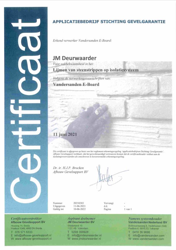 Certificaat Stichting Gevelgarantie