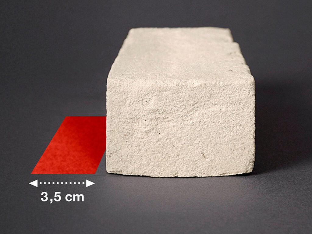 Een EcoBrick is simpelweg een gewone Waalformaat baksteen, alleen is de dikte van de steen geen 100mm maar 65mm.