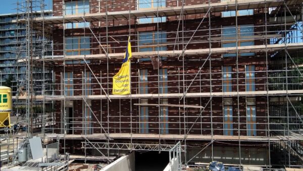 De Steigers zakken rondom het gebouw. De laatste werkzaamheden worden afgerond.